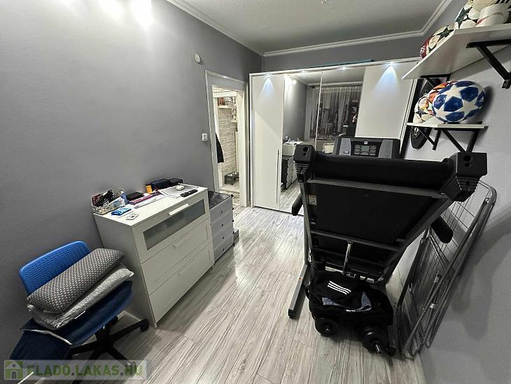 -A lakásban jó állapotú laminált padló található minden helyiségben kivéve a konyhában, ott használtabb állapotú.