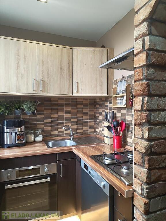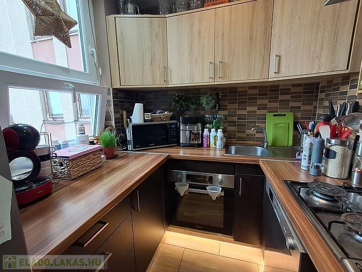 A konyha jól felszerelt, a konyhabútor, mosogatógép, tűzhely és a sütő is az ár részét képezi, az étkezőben található beépített szekrénnyel együtt, a többi bútor megbeszélés tárgyát képezi.