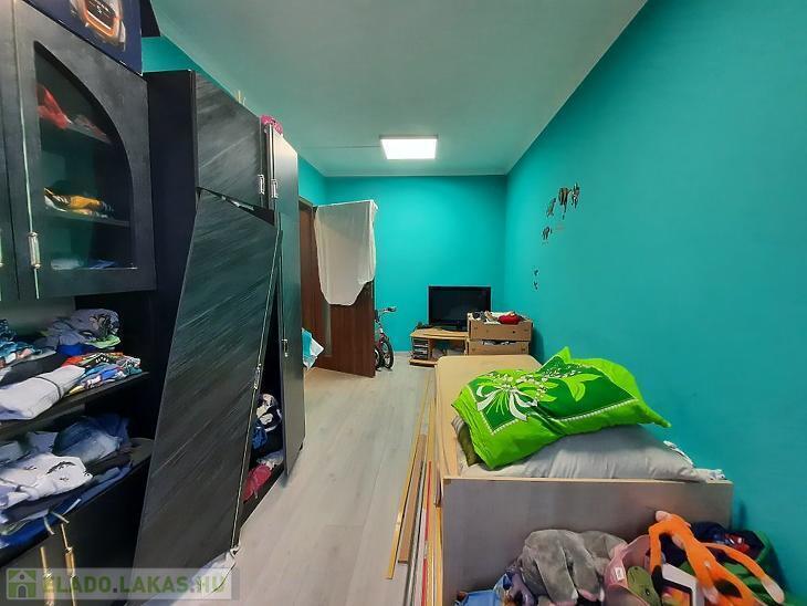 A szobákban és a közlekedőkben minőségi laminált parketta található a falak gletteltek, festettek.