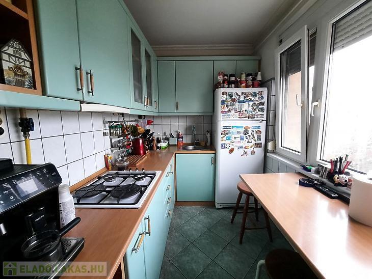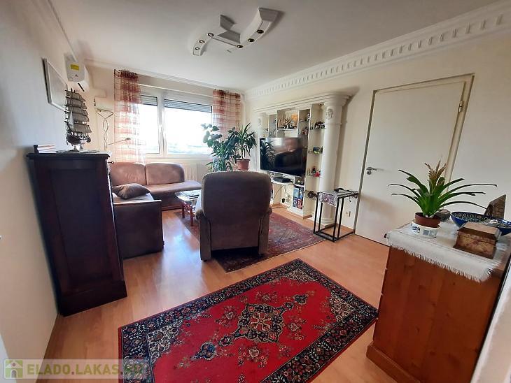 A közlekedő, konyha, fürdőszoba+ wc járólapos, a szobákban laminált parketta található. A fürdőszoba 2 éve felújított, a konyhabútor megkímélt állapotú, és a vételár részét képezi a tűzhellyel és a sütővel. A lakásban két darab hűtő-fűtő klíma gondoskodik a kellemes hőmérsékletről télen-nyáron. A lakás tehermentes!