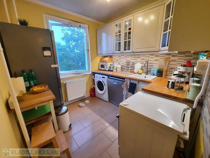 Eladó egy kertvárosra néző loggiás, 65nm-es, jó állapotú, 2+1 szobás panellakás a Páskomliget utcában – tárolóval, gardróbbal, jó elosztással!