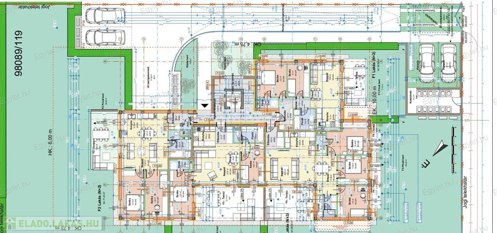 Elektromos kapu, minden lakáshoz udvaron belüli parkolóhely vagy/és teremgarázs került kialakításra felár ellenében.