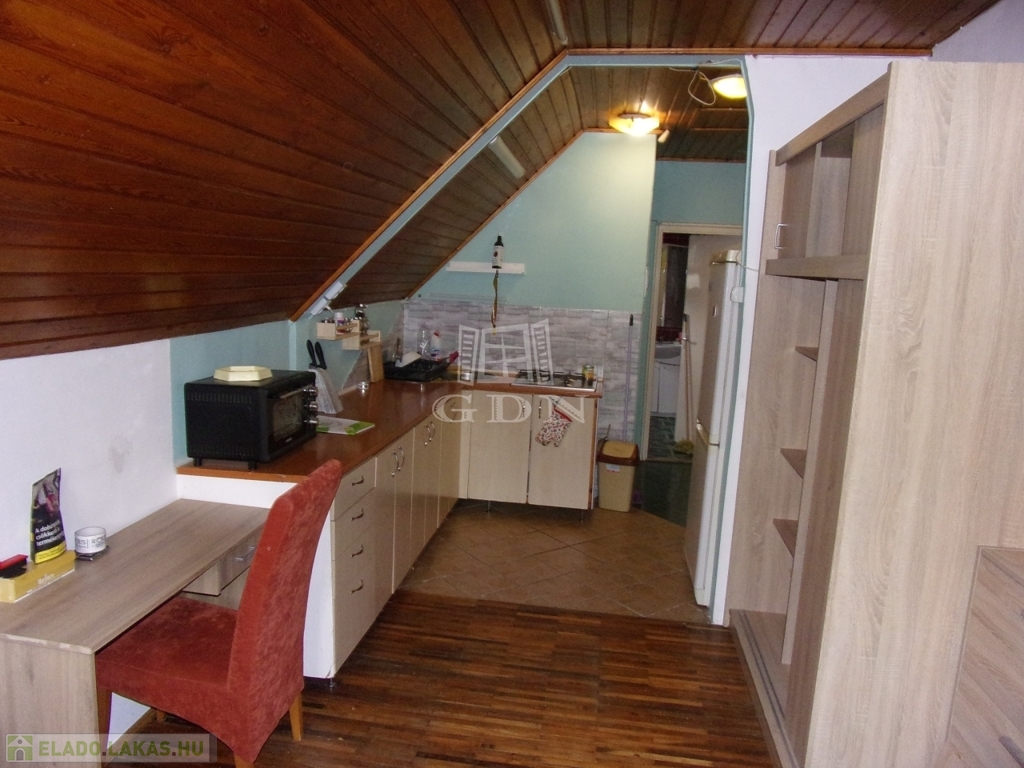 Eladó egy világos, tégla építésű családi ház tetőterében található lakás, csodás panorámával. A lakás 3 félszobás, nagy konyhás-étkezővel, külön fürdővel és WC-vel.