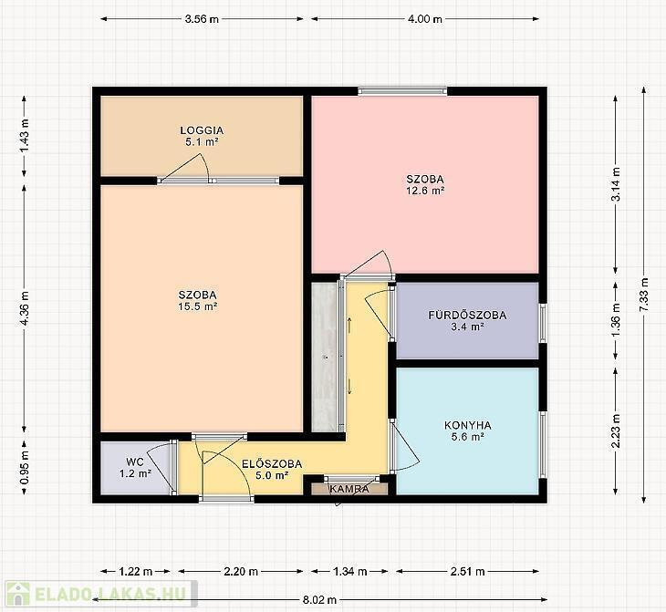 A lakás 52m2-es, tégla építésű, 4nm loggiával.