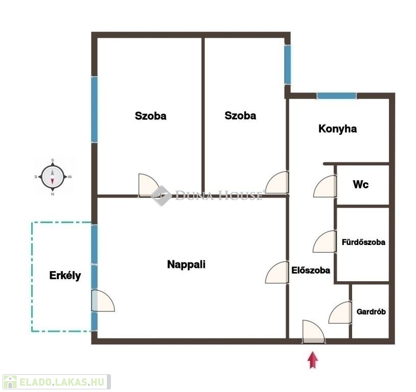 A lakás remek elrendezésű, ideális családosok, összeköltözők számára is. Gardróbszobája igazán praktikus, a mosógépkiállás ide került áthelyezésre, mely lehetővé tette, hogy a fürdőszobába sarokkádat építhessenek be. A gardrób egyébként könnyen a fürdőszobához is nyitható.