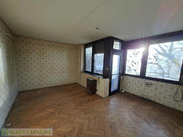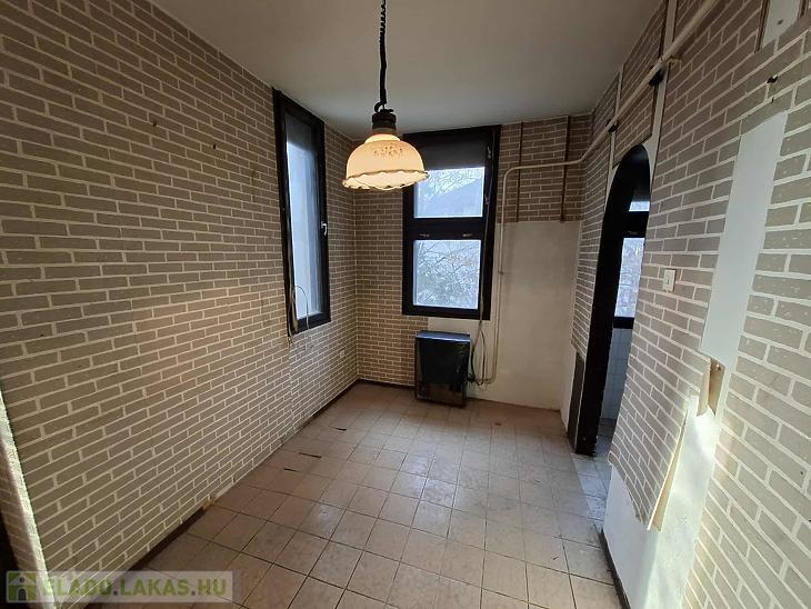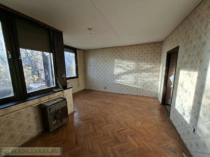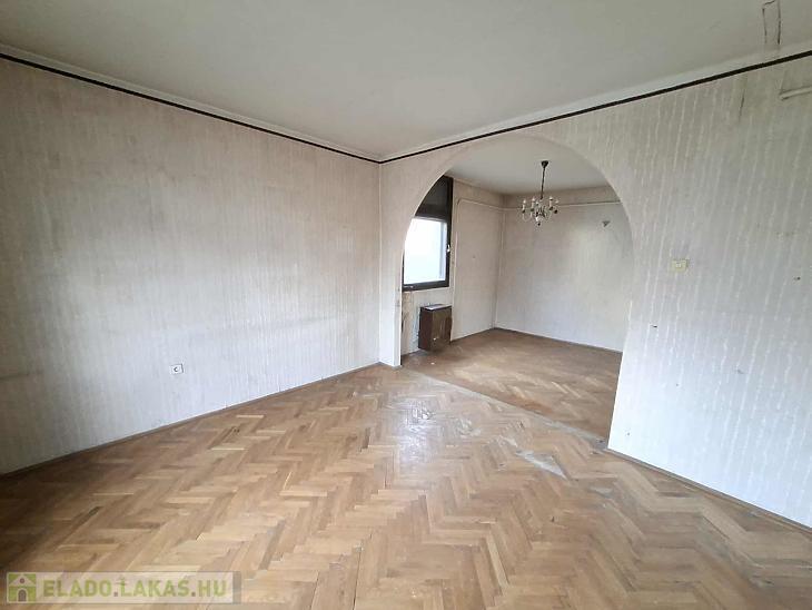 2. emeleti, 73 nm- es esztétikai és műszaki felújítást igénylő, eredetileg 3 szobás lakás. Elosztása kedvező és könnyen alakítható. Jelenleg 2 hálószoba egybe van nyitva, de egy ajtó és egy fal berakásával visszaállítható az eredeti állapot. Fűtése konvektorokkal történik, de van lehetőség az egyedi fűtés kialakítására. A lakás loggiaval és francia erkéllyel felszerelt. Tartozik hozzá egy 12M2-es tároló. A lakás rezsi költsége kedvező, a közös költség tartalmazza a vízfogyasztást. Autóbeálló zárt kapun belül található.