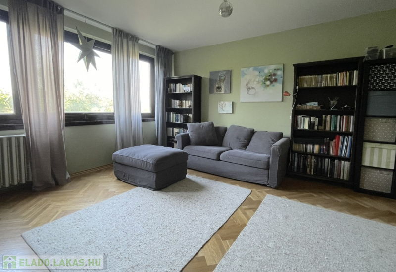 A lakás körbejárható, a helyiségek jól használhatók akár családoknak, akár pároknak vagy idősebbeknek is. A nagy nappali és az egyik hálószoba ablakai, valamint a loggia csendes, zöld kertekre néznek, nem utcafrontra. A másik szoba és a konyha kis előkerttel elválasztott utcára néz.