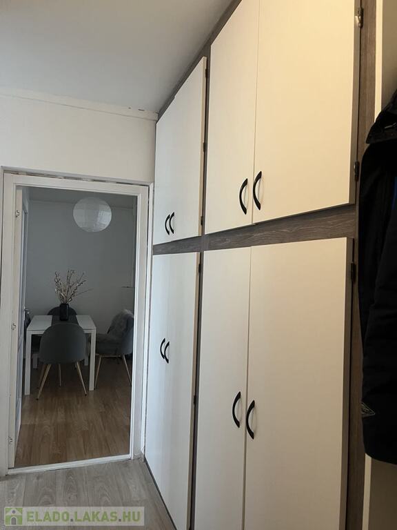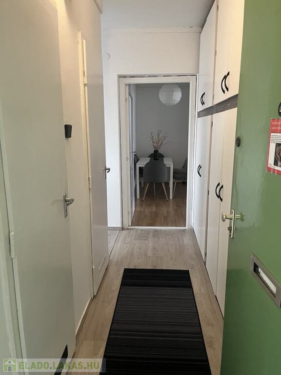 Az előszobában egy hatalmas, sok pakolási lehetőséggel rendelkező beépített gardrób szekrény lett kialakítva. A nagyobb szoba 24,8m²-es, melyhez tartozik egy csendes, nyugodt zöld-övezetre nyíló erkély. A kisebb 12m²-es szoba klímával felszerelt, mely az egész lakás kellemes hőfokon tartására alkalmas. A fürdőszoba és a wc külön helyiségben találhatóak és mind a két helység új, modern burkolatot kapott. A konyha 5,5m² -es és tartozik hozzá egy igényesen kialakított 1,25m²-es kamra.