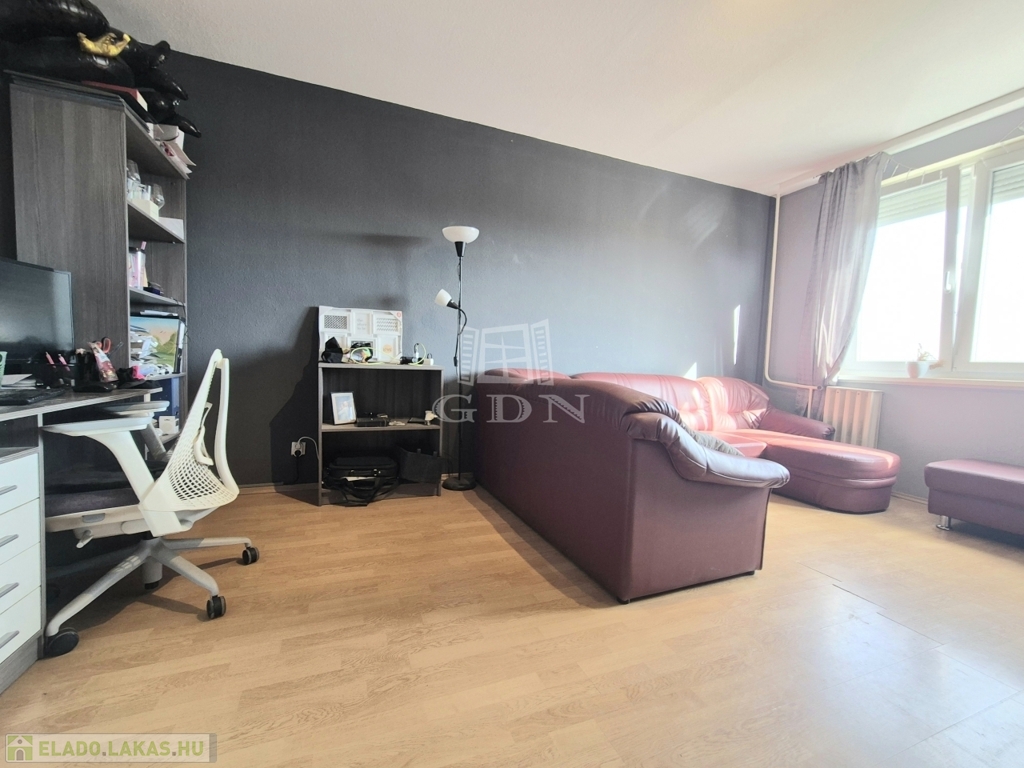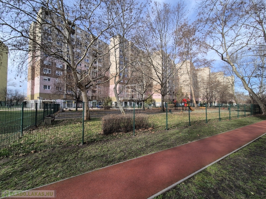 XVIII. kerület központjában, tömegközlekedési eszközök, szolgáltatások gyűrűjében, jó állapotú, kultúrált lakóközösségű társasház 10. emeletén eladásra kínálok, egy örök panorámás, rendkívűl világos, 59 m2-es, kitűnő beosztású, ablakos konyhás, 1+2 fél különnyíló szobás, biztonsági bejárati ajtóval, műanyag-redőnyös nyílászárókkal szerelt panellakást.