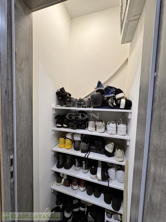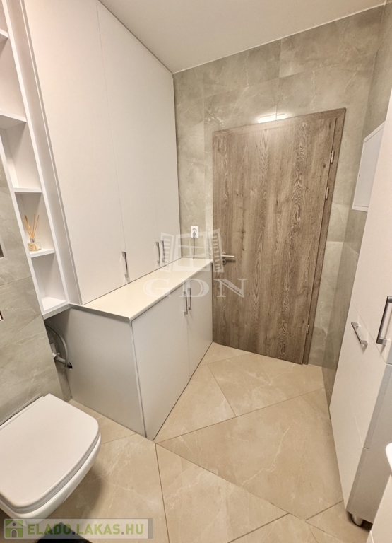 A korábbi konyha helyén egy teljes értékű, modern fürdőszoba kapott helyet, emellett két külön tárolóhelyiség is rendelkezésre áll, ami ritka és rendkívül praktikus.