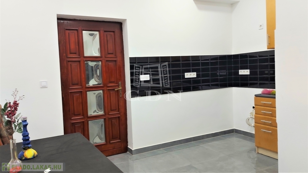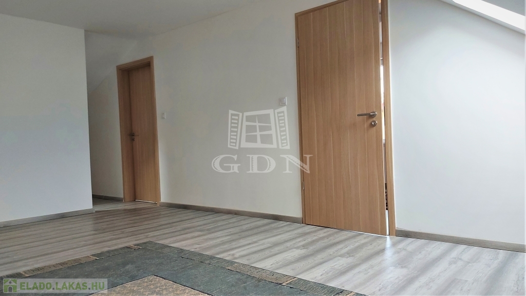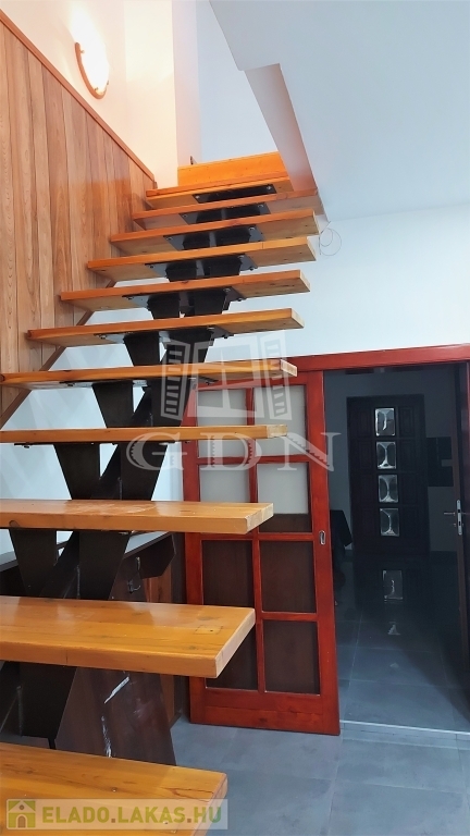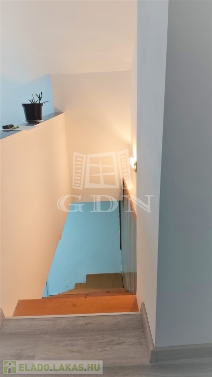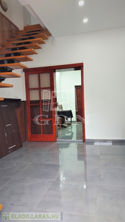 A belső kétszintes lakásba lépve a földszinten, az előszobából, lépcső vezet az emeletre, majd tovább haladva az ebédlős konyhából nyílik a felújított, zuhanyzós fürdő, illetve egy kamra, ahonnan a pincébe juthatunk.Az emeleten, nagy nappaliból nyílik a két szoba és a kádas fürdőszoba.