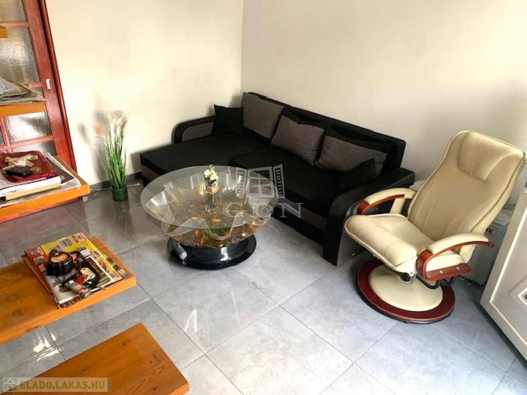 A belső kétszintes lakásba lépve a földszinten, az előszobából, lépcső vezet az emeletre, majd tovább haladva az ebédlős konyhából nyílik a felújított, zuhanyzós fürdő, illetve egy kamra, ahonnan a pincébe juthatunk.Az emeleten, nagy nappaliból nyílik a két szoba és a kádas fürdőszoba.