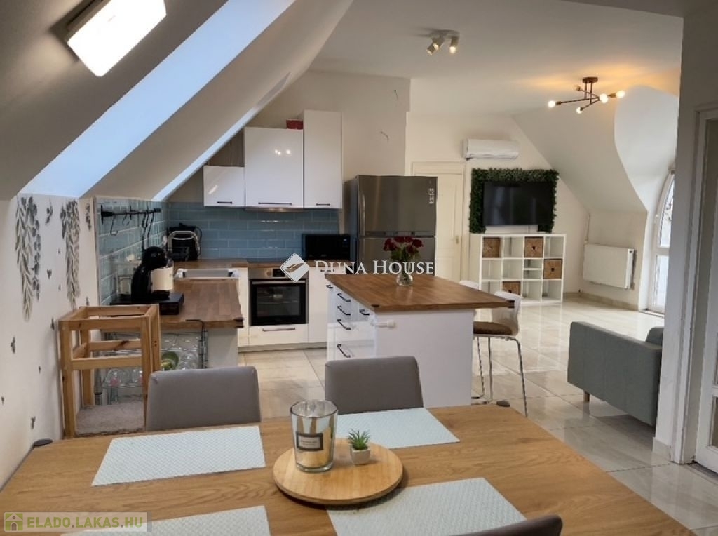 Kivételes lehetőség Budapest 18. kerület kertvárosi részén !3 lakásos társasházban kínálom megvételre ezt a 83 nm alapterülettel rendelkező , tetőtéri lakás Budapest XVIII. kerület Újpéteri részén. Főbb jellemzők:Alapterület: 83 m²Elrendezés:-amerikai konyhás nappali- 2 szoba-fürdőszoba +wc-wc-gardrób szoba Erkély: 4 m², délnyugati tájolású1 db autó beállási lehetőség az udvarra .Kert használatPrivát, zárt lépcsőház + extra tároló + padlásA lakás fűtését és melegvíz ellátását gázcirkó biztosítja , radiátorokon történő hőleadással ( 2025 ben lett korszerűsítve )A lakásban 1 db klíma került beszerelésreA modern kialakítású beépített gépiesített konyhabútor a vételár részét képezi. Csendes, családbarát környék, barátságos lakóközösségA társasházban 2 lakás és 1 üzlethelyiség találhatóKözelben: bevásárlási lehetőségek, óvoda, iskola, orvosi rendelőAmennyiben hirdetésem felkeltette érdeklődését, várom megtisztelő hívását.
