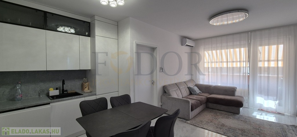 A vételár tartalmazza a modern, gépesített konyhabútort, a beépített gardróbszekrényeket, az előszobabútort, valamint az összes beépített prémium burkolatot és világítást. A lakás igényes belső kialakításának köszönhetően külön beruházást nem igényel, a birtokbaadás pedig megállapodás után körülbelül 1 hónapon belül lehetséges.