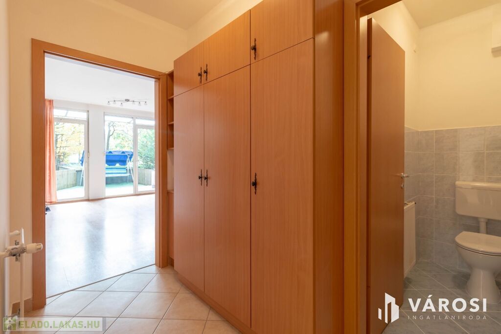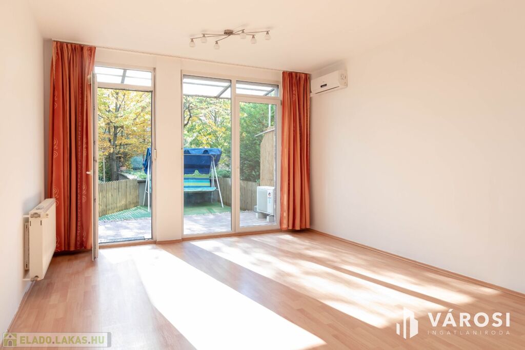 Különlegessége a nappaliból közvetlenül nyíló 9,5 m2-es, kövezett terasz és az előtte lévő 10 m2-es, műfüves, saját kiskert, melynek köszönhetően ez az ingatlan egy igazi kis oázis, egy valódi kis személyes sziget.