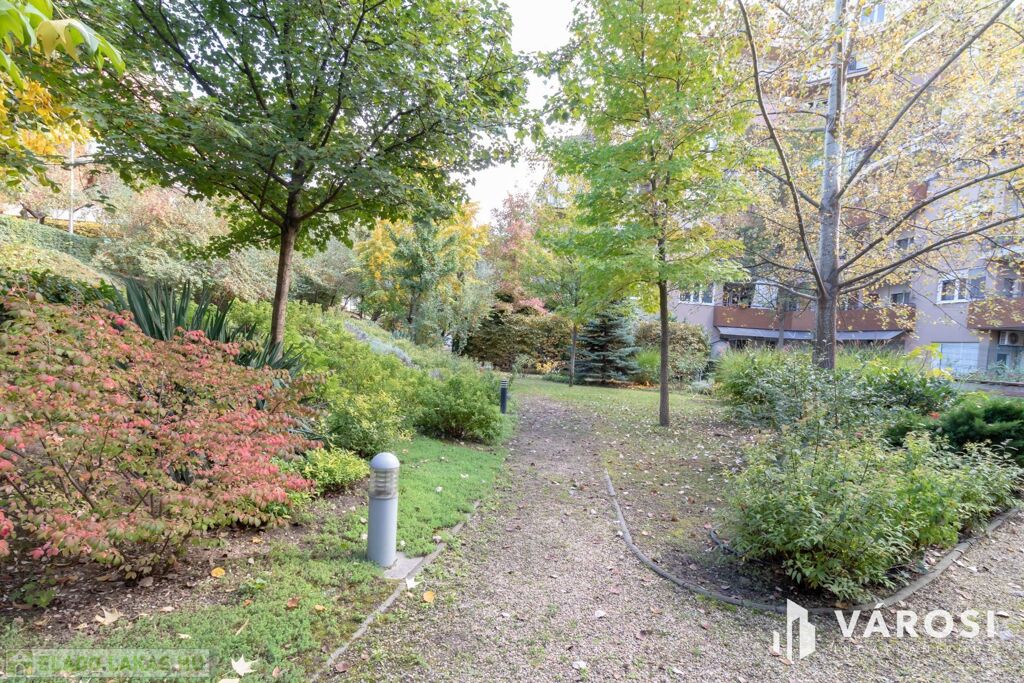 A kertvárosi jelleget a társasház hatalmas, több szintes, zárt, szépen parkosított udvara adja, ahol sétányok, padok és játszótér is várja a lakókat.