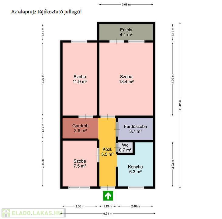 A TÁGAS NAPPALI MELLETT KÉT KÜLÖN NYÍLÓ HÁLÓSZOBA, egy erkély, modern konyha, fürdő és külön WC teszi praktikussá az elrendezést.