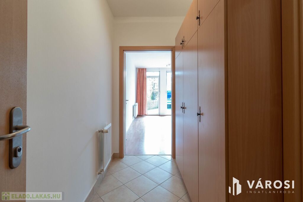 A lakás egy 2008-as, tégla építésű, modern, rendezett, csendes, tiszta és karbantartott, liftes, zárt lépcsőházú társasház földszintjén helyezkedik el.