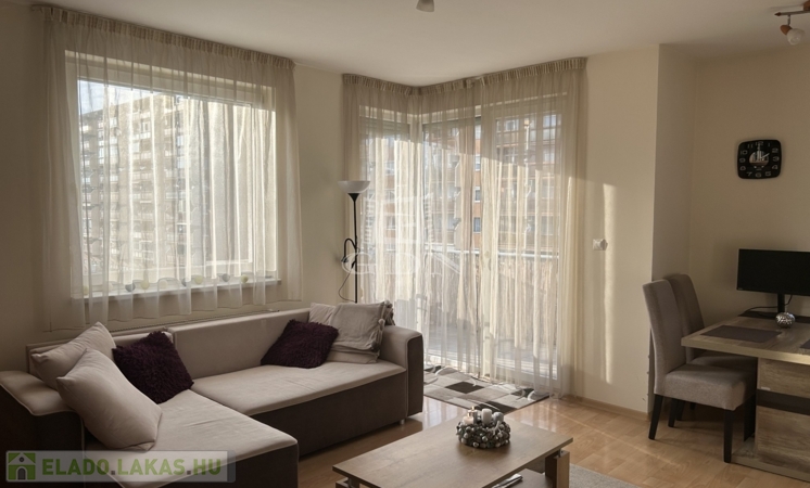 A 60 m²-es lakás egy 2005-ben épült társas ház 3. emeletén található, 2 különálló erkéllyel (6.9 és 7.6 m2).