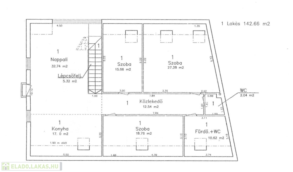 Az ingatlan egy 50 nm-es, egy 19 nm-es, egy 17 nm-es, egy 28 nm-es helységekkel, plusz egy 19 nm-es raktárat valamint egy külön fürdőszobát és wc-t tartalmaz.