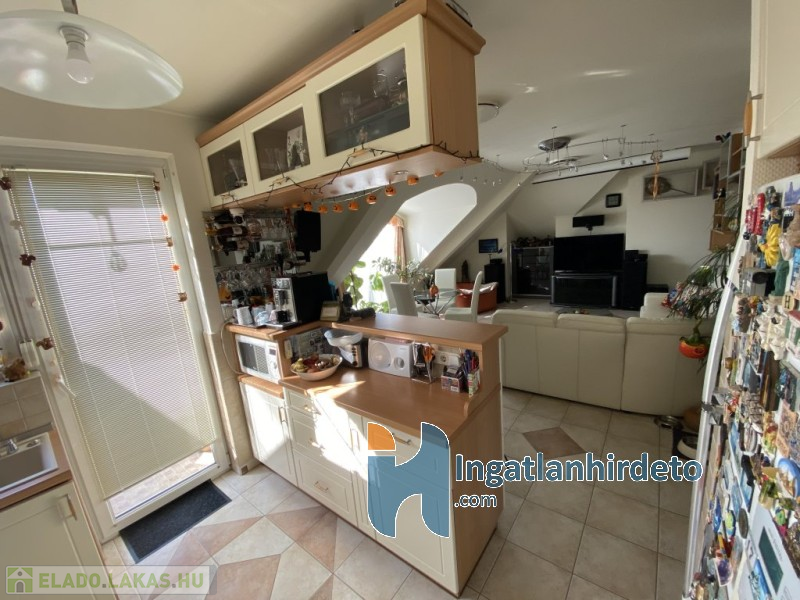 Elhelyezkedése: Belterület Emeleti elhelyezkedés: Emeleten Emelet száma: 3 Épület emeleteinek száma: 3 Állapota: Kiváló Komfort besorolása: összkomfortos Építési éve: 2008 Alapterülete: 102 m2 Szobák száma: 4 + 1 szoba Közművek: Gáz Fűtés módja: Gáz Fűtés típusa: Cirkó Homlokzat állapot: új Építési mód: Tégla Tető formája: Lapos Parkolási lehetőség: Garázsban, Utcán, Parkolóházban Kilátás: Utcafronti kilátás, Udvari kilátás, Városi panoráma Napelem: Nincs Jellemzői: Alacsony rezsi, Csendes környék, Jó közlekedés, Redőny, Ikergarázs, Légkondicionáló, Étkező, Udvari terasz, Amerikai konyha, Beépíthető tetőtér, Beépített szekrény, Beépített konyhabútor, Kaputelefon, Kert, Parketta burkolat, Zöldterület, Jó közbiztonság, Beépített tetőtér Energetikai besorolás: Nincs adat Egyéb jellemzők: Terasz, Lift, Tetőtér Tv, Internet: Kábeltévé, Internet, Vezetékes telefon Közelben: Iskola, Óvoda, Közelben metró, Villamos, Vasútállomás, Autóbuszállomás, Helyi autóbuszállomás, Orvosi rendelő, Bolt, Gyógyszertár, Postahivatal, Vendéglátó egység, Autópálya Rezsi költség(Ft): 50000 Terhelések: Tehermentes ingatlan Eladásra vonatkozó információk: Az ár tartalmazza a teljes berendezést, Azonnal beköltözhető