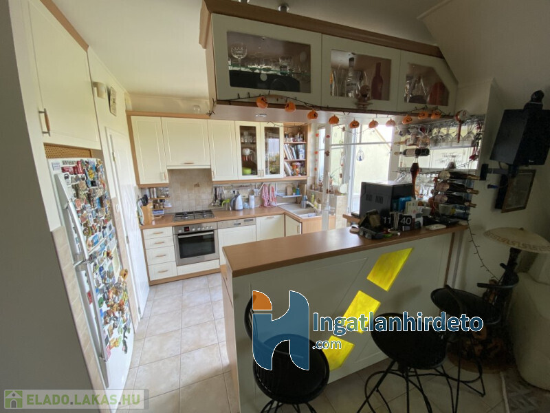 Elhelyezkedése: Belterület Emeleti elhelyezkedés: Emeleten Emelet száma: 3 Épület emeleteinek száma: 3 Állapota: Kiváló Komfort besorolása: összkomfortos Építési éve: 2008 Alapterülete: 102 m2 Szobák száma: 4 + 1 szoba Közművek: Gáz Fűtés módja: Gáz Fűtés típusa: Cirkó Homlokzat állapot: új Építési mód: Tégla Tető formája: Lapos Parkolási lehetőség: Garázsban, Utcán, Parkolóházban Kilátás: Utcafronti kilátás, Udvari kilátás, Városi panoráma Napelem: Nincs Jellemzői: Alacsony rezsi, Csendes környék, Jó közlekedés, Redőny, Ikergarázs, Légkondicionáló, Étkező, Udvari terasz, Amerikai konyha, Beépíthető tetőtér, Beépített szekrény, Beépített konyhabútor, Kaputelefon, Kert, Parketta burkolat, Zöldterület, Jó közbiztonság, Beépített tetőtér Energetikai besorolás: Nincs adat Egyéb jellemzők: Terasz, Lift, Tetőtér Tv, Internet: Kábeltévé, Internet, Vezetékes telefon Közelben: Iskola, Óvoda, Közelben metró, Villamos, Vasútállomás, Autóbuszállomás, Helyi autóbuszállomás, Orvosi rendelő, Bolt, Gyógyszertár, Postahivatal, Vendéglátó egység, Autópálya Rezsi költség(Ft): 50000 Terhelések: Tehermentes ingatlan Eladásra vonatkozó információk: Az ár tartalmazza a teljes berendezést, Azonnal beköltözhető