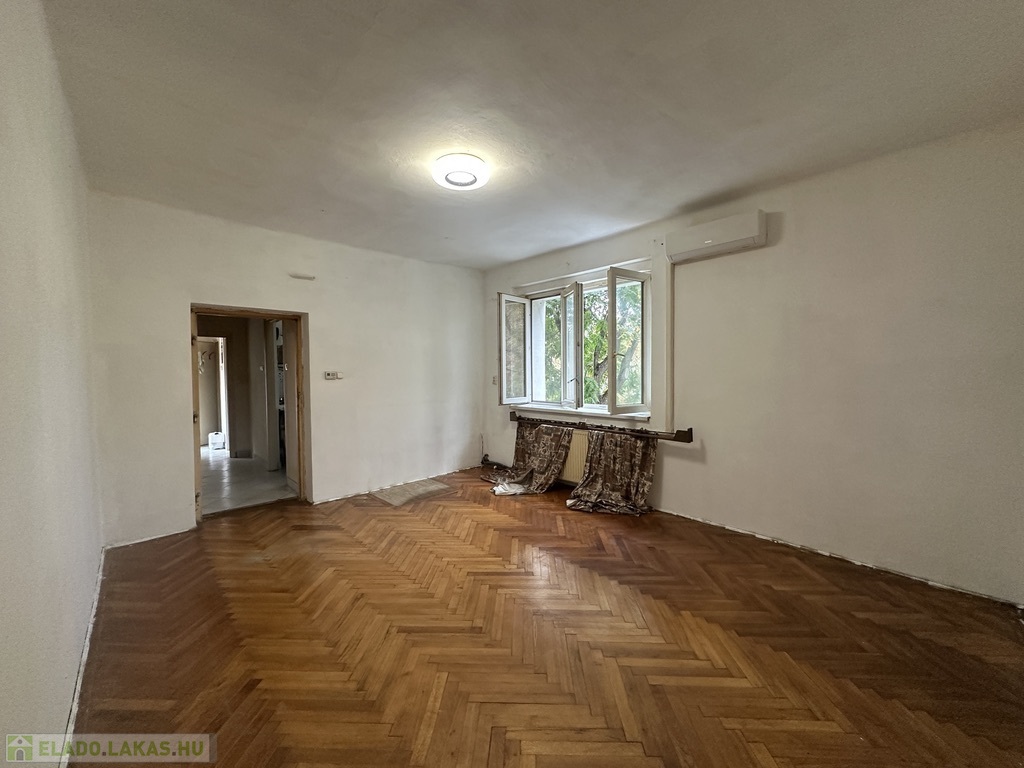A szoba parkettás, a többi helyiség járólapos, a lakásban található csempékből és járólapokból még van a pincében. Kisebb átalakítás és festés igényelt. A lakáshoz tartozik egy zárható saját tároló a pincében; parkolási lehetőség az épület előtt.