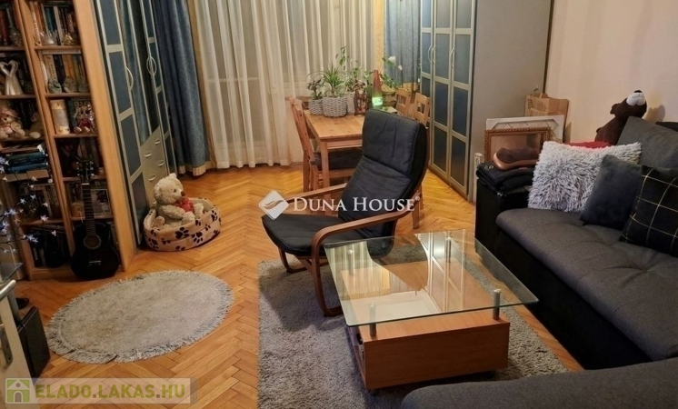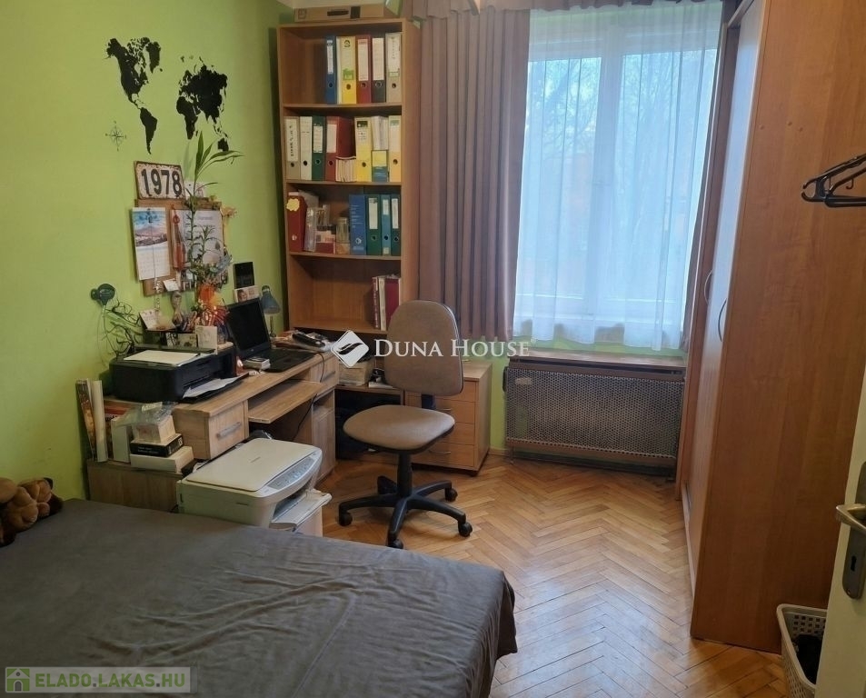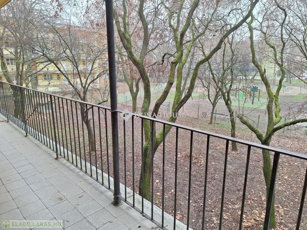 Főbb jellemzők: Északkeleti tájolású nappali és hálószoba, utcai kilátással- Délnyugati tájolású konyha és szoba, parkra néző zöld panorámával- Északkeleti fekvésű erkély- Tágas előszoba - A hátsó közlekedő egy kisebb beépített szekrényt is tartalmaz- 2 oldalt bepolcozott kamra (kb. 2 m²)- Szobákban eredeti, jó állapotú parketta, egyéb helyiségekben linóleum- Normál és éjszakai áram- Melegvíz-ellátás külön bojlerekkel (konyha, fürdő)- A vízdíj a közös költség része, korlátlan használattal
