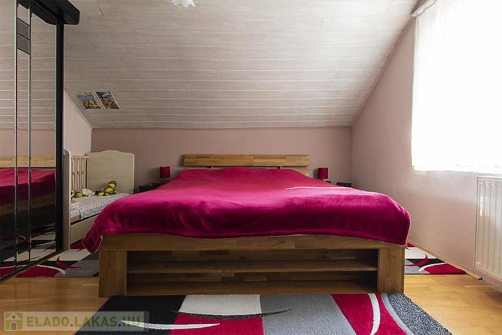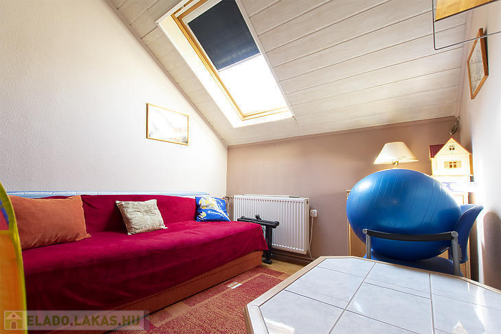 Csepel-Királyerdő egyik legcsendesebb részén, a Juharos utcában eladó egy kertvárosi hangulatú, négyszobás emeleti házrész. Az ingatlan belső kialakítása nettó 75 négyzetméter, amely a tetőtéri adottságoknak köszönhetően bruttó 90 négyzetméteres életteret biztosít. A lakáshoz egy 270 négyzetméteres, saját használatú telekrész tartozik, az udvarra való bejutást pedig elektromos kapu és kiépített autóbeálló segíti.