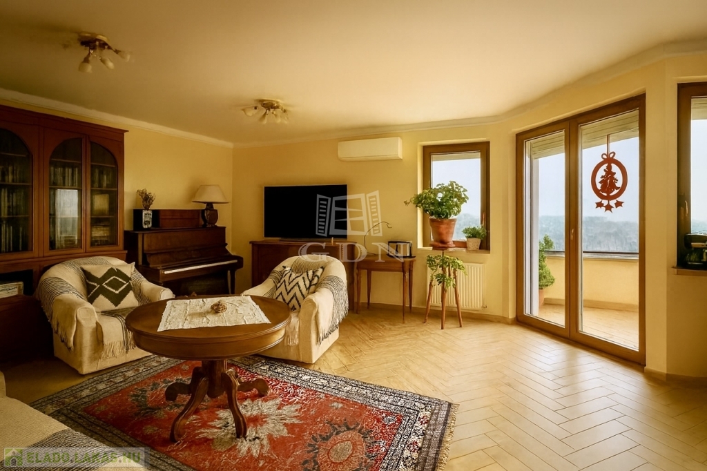 XI. és XXII. kerület határán, Rózsavölgy hegyoldali, csendes, panorámás utcájában kínálunk megvételre egy felújított állapotú, 98 m²-es örökpanorámás, egyszintes, 3 szobás, dupla teraszos téglaépítésű lakást, amely tökéletes választás lehet azoknak, akik a természet közelségét és a városi infrastruktúrát egyszerre szeretnék élvezni.