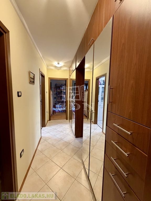 A lakás kertvárosias környezetben helyezkedik el, így a felhőtlen nyugalom garantált.