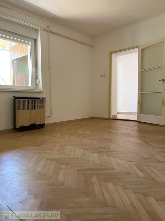 Eladó folyamatosan megújuló, zöldövezeti környezetben lakható, de belső felújítást igénylő háromlakásos társasház földszinti, önálló kerttel rendelkező 2+1/2 szobás lakása. A teljes telekméret 493 m2, az ingatlan alapterülete 59 m2, mely 2024-ben teljeskülső hőszigetelést kapott. A lakás tehermentes, jelenleg nem lakott. Parkolás az utcán lehetséges és díjmentes.