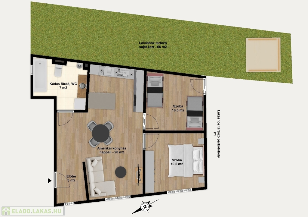 A kertkapcsolat és a kültéri parkolóhely kizárólagos használati jogát megosztási szerződés szabályozza.