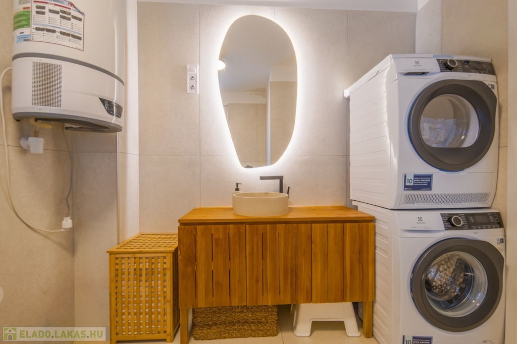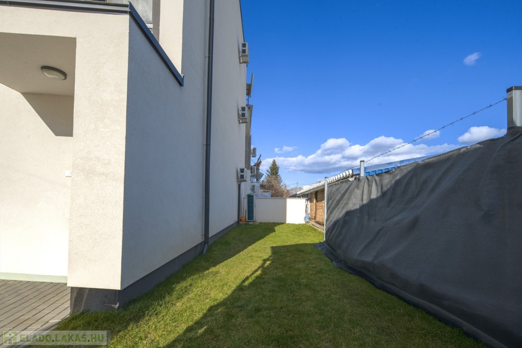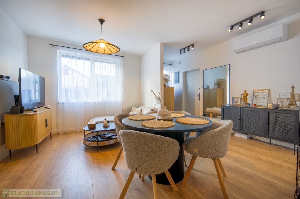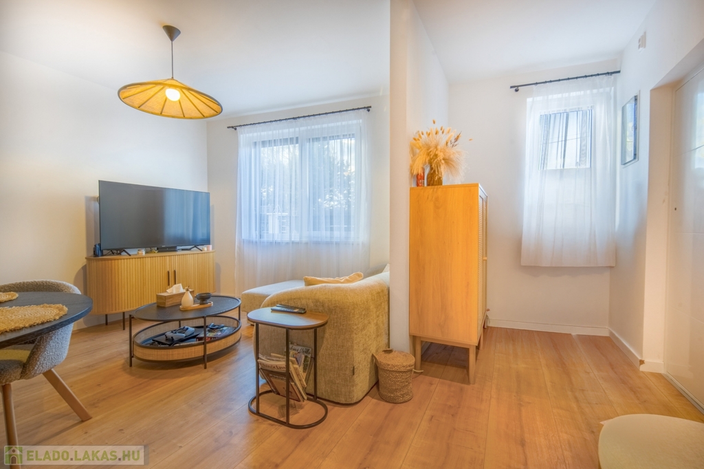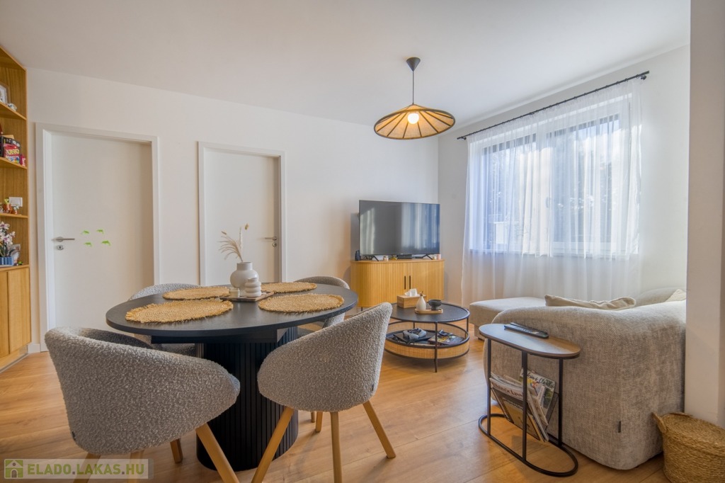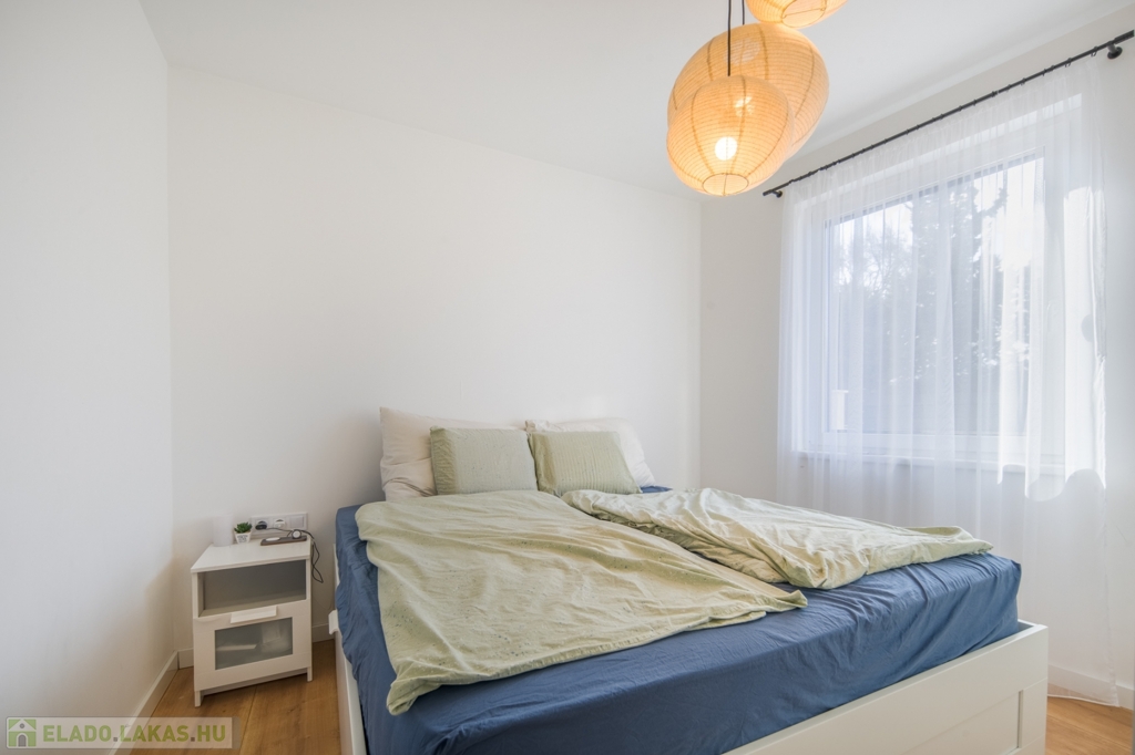 3 szobás, 59 m2-es, földszinti, 66 m2 saját kertkapcsolattal és kizárólagos használatú kültéri parkolóhellyel rendelkező, kiváló állapotú lakás eladó Budafokon, 2023-ban épült, 3 lakásos társasházban. Modern, ízléses anyaghasználata, hőszivattyús fűtése és a kertkapcsolat ritkán látható kombináció, családosoknak is kiváló választás lehet - az épületben gáz nincs.