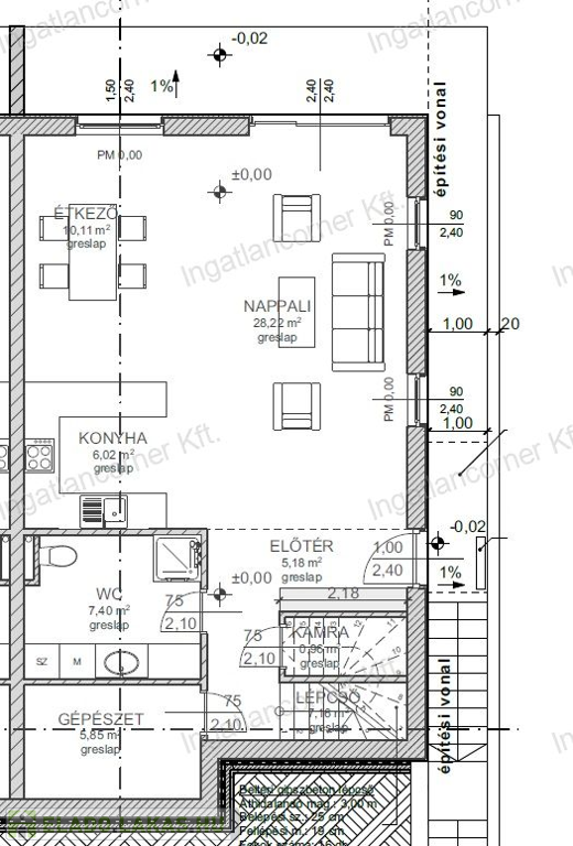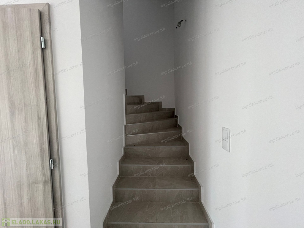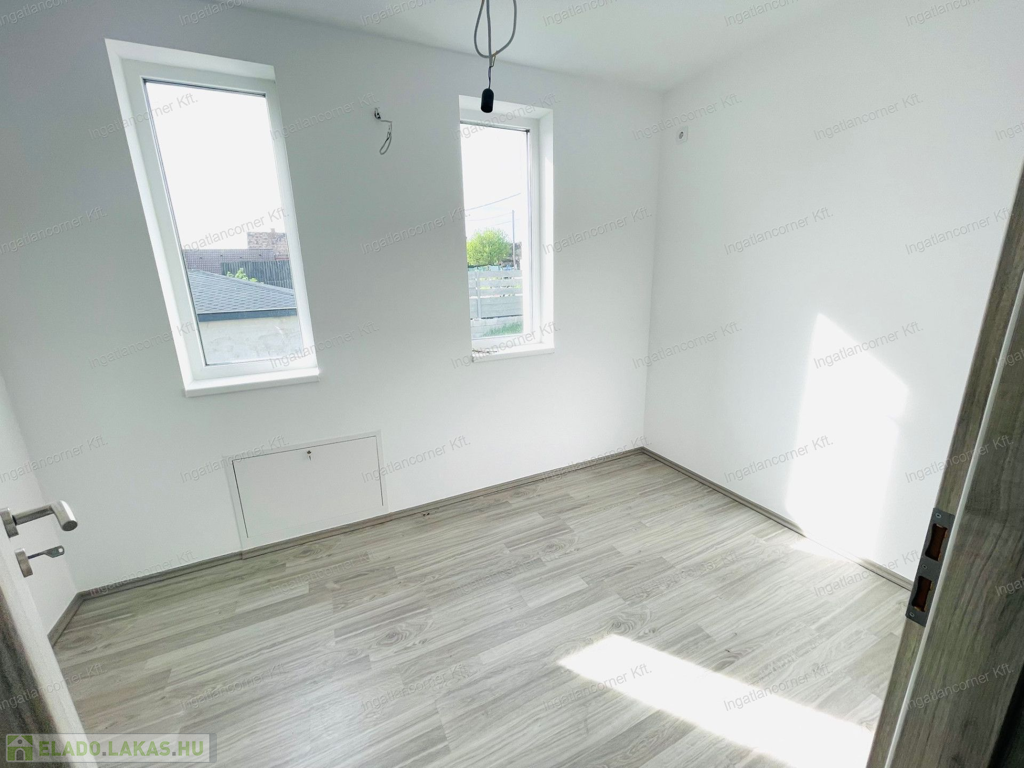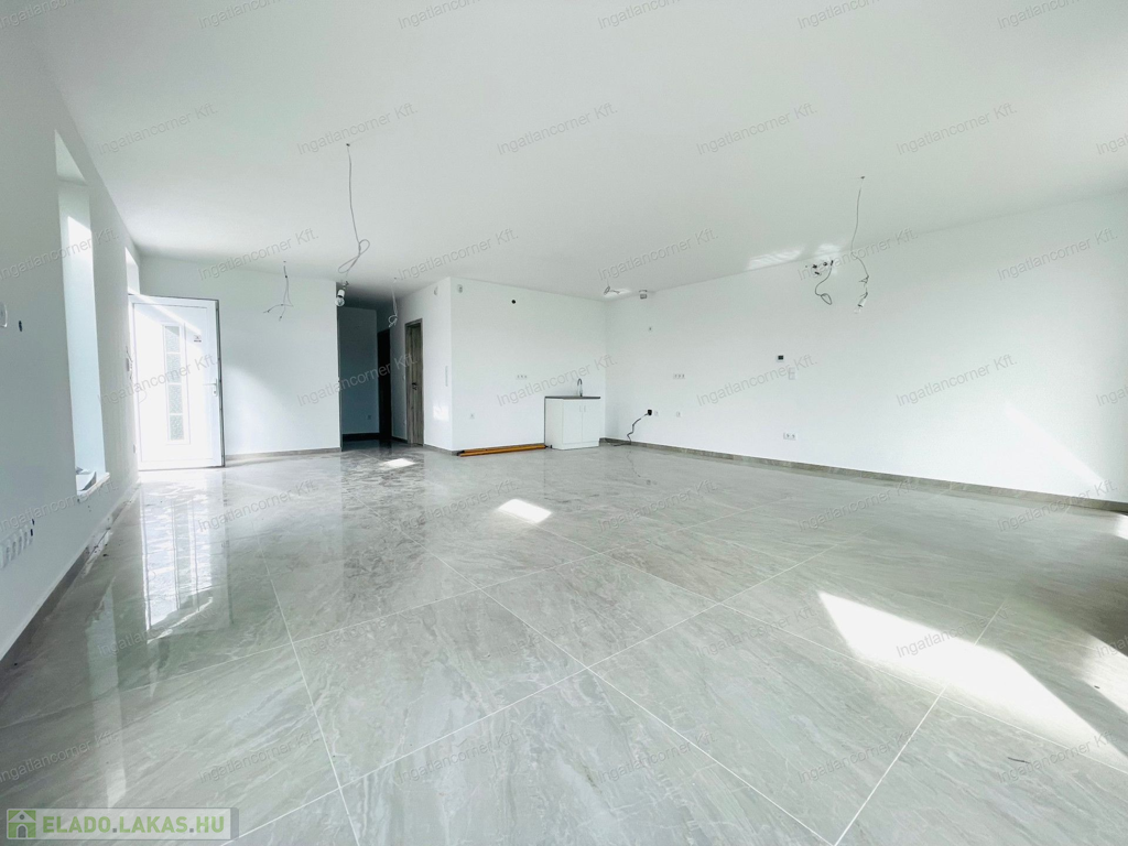•Földszint: amerikai konyhás nappali, fürdő, dupla tároló, 10 m²-es terasz, 161,5 m² saját kert