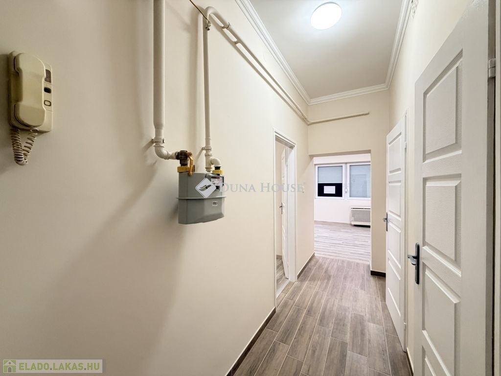 ELADÓ TELJESEN FELÚJÍTOTT LAKÁS CEGLÉDEN, A BELVÁROS SZÍVÉBEN!Eladásra kínálunk Cegléden egy téglaépítésű, 50 m2 hasznos alapterületű földszinti lakást a belvárosban.Helyiségeket tekintve kialakításra került egy hálószoba, amerikai-konyhás nappali, fürdő külön WC-vel, háztartási helyiség a gépeknek és egy előtér.A lakásban felújításra kerültek:- új külső műanyag nyílászárók redőnnyel, belső nyílászárók- villany, víz, csatornahálózat- hűtő-fűtő klíma felszerelése- esztétikai felújítások, burkolás, festés.A lakás fűtését gázkonvektorok látják el, melyek szintén felújításra kerültek.A melegvizet új ARISTON villanybojler adja.Az ingatlan per, teher és igénymentes, azonnal birtokbavehető.Lokációját tekintve kiváló, Cegléd belvárosában tulajdonképpen sétatávolságon belül minden elérhető.ÖRÖMMEL ÁLLOK RENDELKEZÉSÉRE A DUNA HOUSE KÍNÁLATÁBAN MEGTALÁLHATÓ ÖSSZES INGATLANNAL KAPCSOLATBAN.HÉTVÉGÉN IS VÁROM MEGTISZTELŐ HÍVÁSÁT!