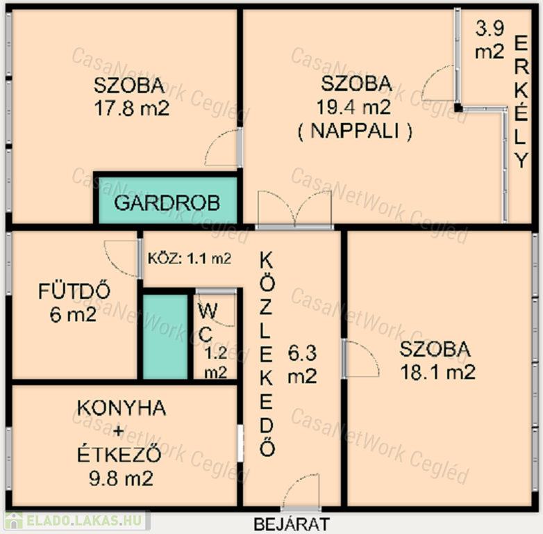A CASANETWORK CEGLÉD eladásra kínálja a 174602156 számú ceglédi belvárosi 83 m2-es felújított tégla lakást.