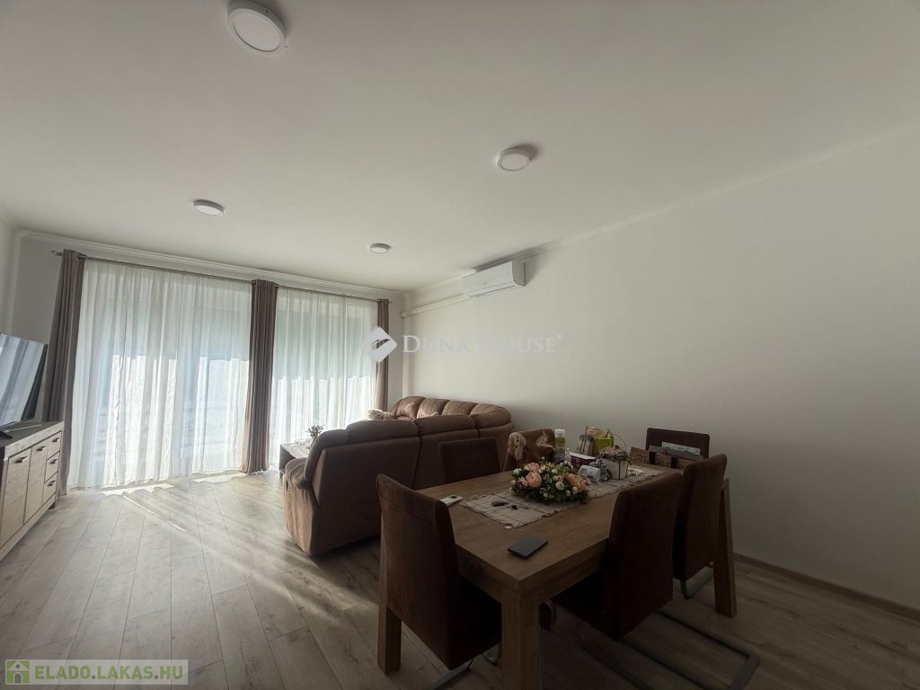 Újszerű sorházi lakás saját kerttel és garázzsal Cegléd belvárosában rendkívül alacsony rezsivel!Cegléd belvárosában eladó egy mindössze 2 éves, modern kialakítású, 72 m²-es sorházi lakás, amely amerikai konyhás nappalival és 2 külön nyíló hálószobával rendelkezik. Az ingatlanhoz egy 70 m²-es saját kertkapcsolat, valamint egy 15 m²-es zárt garázs is tartozik, elektromos kapunyitással.A lakás 30 cm-es téglafalazattal-15 cm-es hungarocell szigeteléssel,-BRAMAC tetőcseréppel épült, így hosszú távon is megbízható és energiatakarékos.A korszerű hőszivattyús fűtés padlófűtéssel biztosítja a kellemes hőérzetet, miközben a rezsiköltség rendkívül alacsony. 6 légkamrás műanyag nyílászárók, redőnnyel felszerelveA lakás elrendezése kényelmes, jól átgondolt, élhető terekkel és minimalista szín összeállítással rendelkezik !A tágas nappali és a közvetlen kertkapcsolat tökéletes lehetőséget nyújt pihenésre, családi és baráti összejövetelekre.A lakás vételárát képezi a konyha bútor, mely asztalos álltal lett tervezve és kivitelezve , prémium kategóriás képekkel felszerelve ( 1 éve került beszerelésre )Főbb jellemzők: 72 m² lakótér Amerikai konyhás nappali -2 hálószoba 70 m² saját kert 15 m² zárt garázs elektromos kapuval Hőszivattyús padlófűtés Kiváló szigetelés, alacsony rezsi Belvárosi elhelyezkedésIdeális választás családoknak, pároknak vagy befektetésnek is!Amennyiben hirdetésem felkeltette érdeklődését, várom megtisztelő hívását.