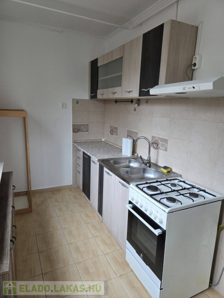 A konyhában gáztűzhely és konyhabútor is található.