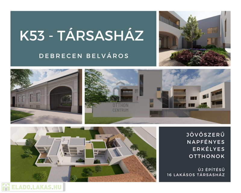 A Belváros központhoz közeli részén kerül kivitelezésre ez a JÖVŐSZERŰ, több lakásméretben gazdag, egyedi tervezésű, 16 lakásos, liftes társasház.