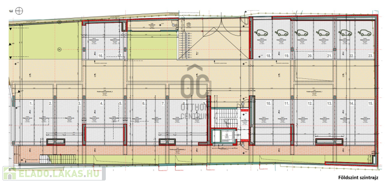 Gépkocsi beállók ( 7,2 MFt/db) a földszinti pillér lábak között lettek kialakítva és mindegyik autótöltővel felszerelt.
