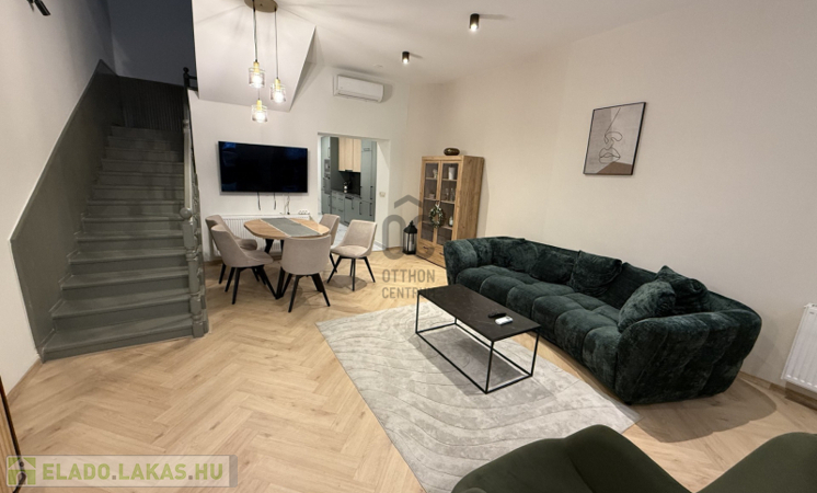Debrecen belvárosának sétáló övezetében eladó, 115 m2, kétszintes, nagypolgári lakás.
