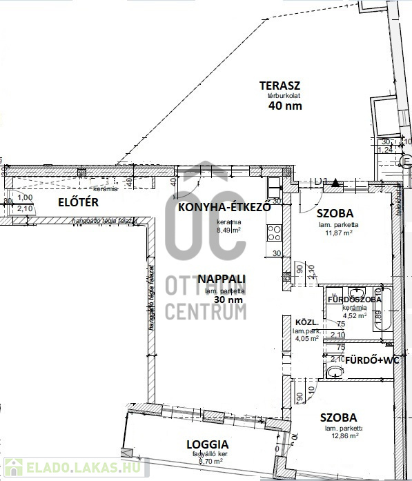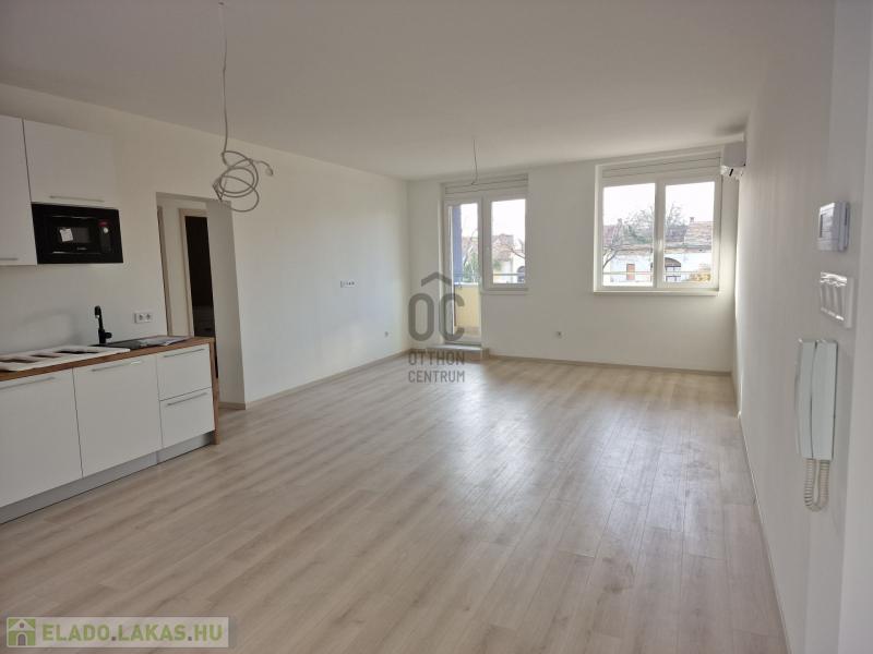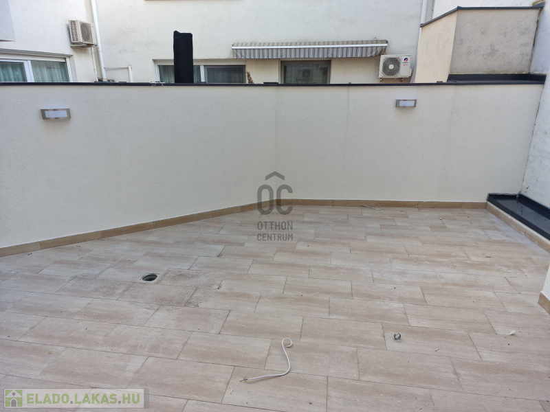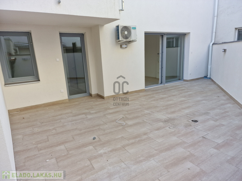 Debrecen, Belvárosának szívében, 2022-ben, magas műszaki tartalommal megépült, egyedi megjelenésű, liftes társasház 1. emeletén eladó, 81,2 nm-es, nappali-étkező-konyha + 2 szobás, 2 fürdőszobás, luxus lakás, 40 nm-es terasszal + 8 nm-es erkéllyel. Jellemzők: Egyedi tervezésű konyhabútor beépített gépekkel, (főzőlap, sütő, mikró, elszívó, hűtő-fagyasztó), elektromos redőnyök, 2 fürdőszoba-WC, 3 klíma, prémium kategóriás burkolatok, 3 rétegű üvegezésű nyílászárók.