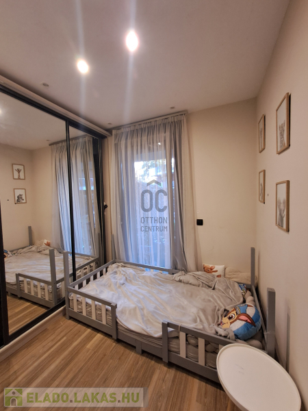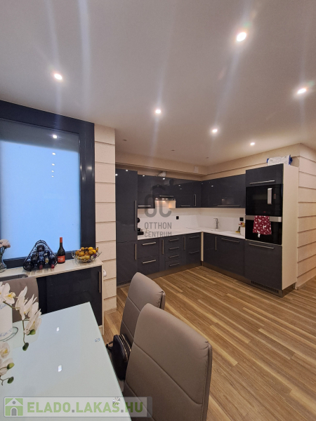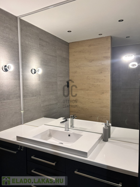 A konyhába egyedi tervezésű gépesített konyhabútor (főzőlap, sütő, mikró, mosogatógép, hűtő, elszívó) került beépítésre. Az egyik szobában egy hatalmas méretű, praktikus belső elrendezéssel bíró gardróbot alakítottak ki. A fürdőszobába nívós burkolatok és szaniterek kerültek. A prémium kivitelezés, a beépített bútorok és szekrények, valamint a LED hangulatvilágítás mind hozzájárulnak ahhoz, hogy otthona stílusos és kényelmes legyen.