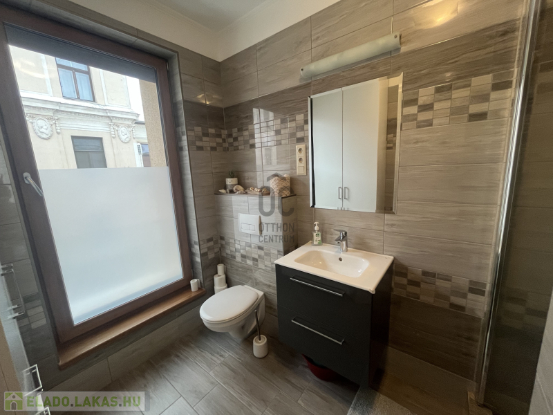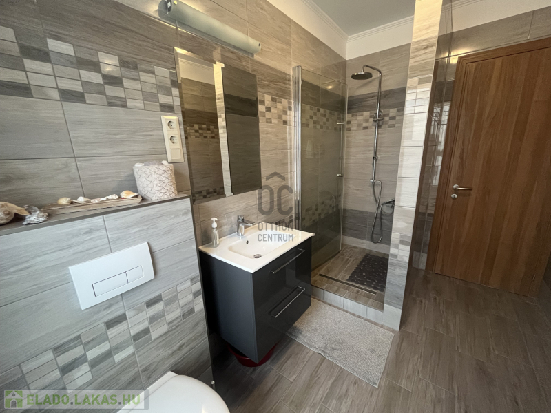 Modern, zuhanyzós fürdőszoba - wc, külön mosókonyha - wc.