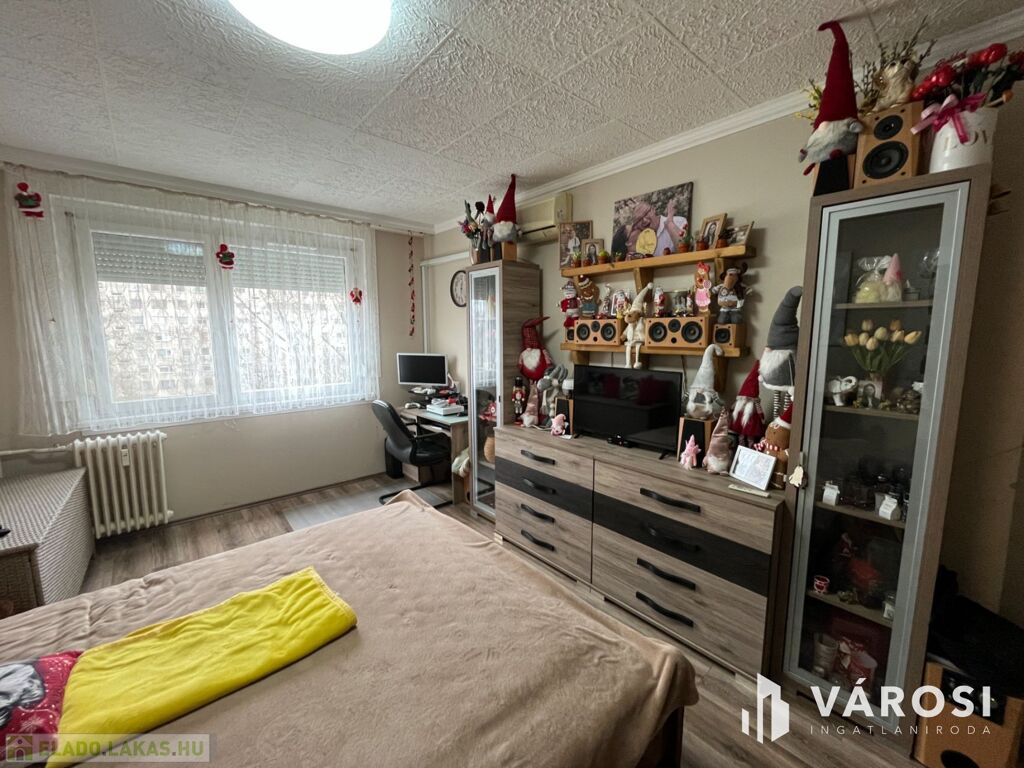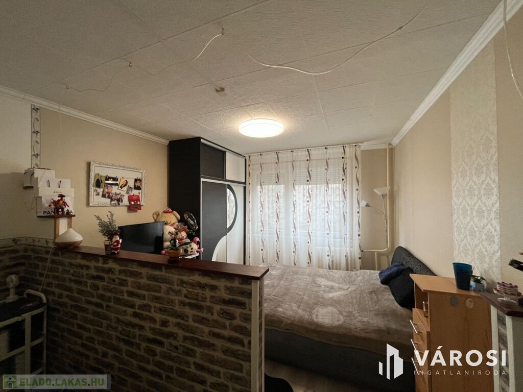 A lakás elosztása praktikus: 2 kényelmes szoba, külön fürdőszoba és WC biztosítja a lakók kényelmét. A redőnyözött ablakok mellett szúnyogháló is gondoskodik az otthon nyugalmáról, míg a beépített szekrények rengeteg tárolóhelyet kínálnak. A nagyméretű gardróbnak köszönhetően a nagyobb tárgyak elhelyezése sem okoz problémát.