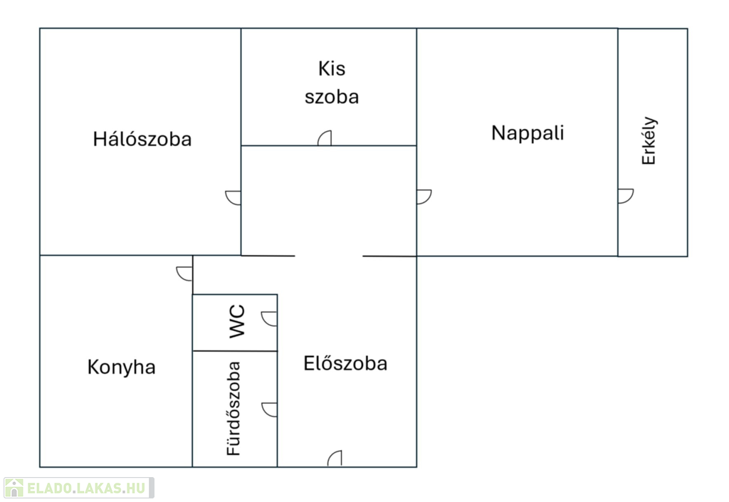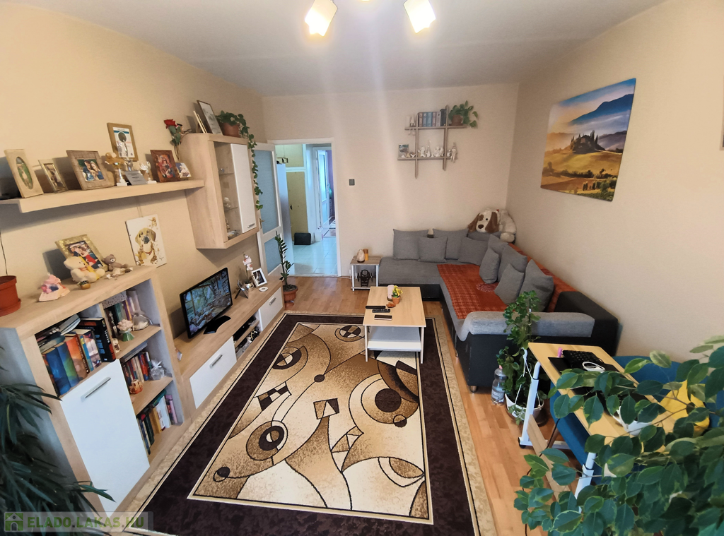 - Helyiségei: előszoba, étkezőkonyha, nappali + 2 külön nyíló szoba, fürdőszoba, WC külön.