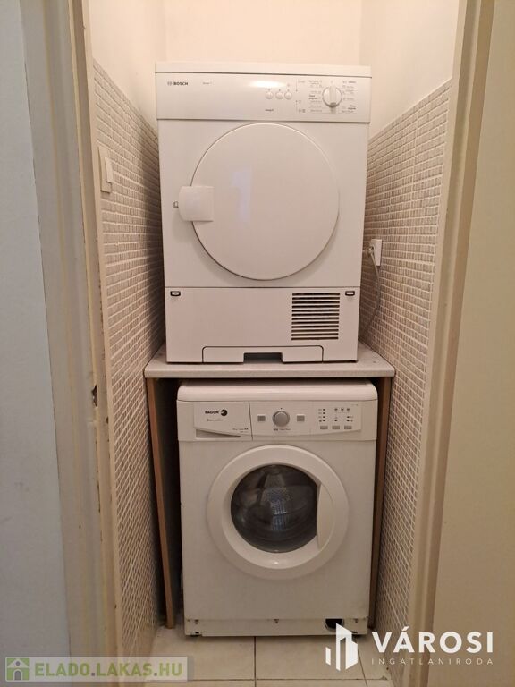 A konyhával szemben található egy spájz vagy kamra, ami jelenleg mosószobaként funkcionál, elfér benne egy mosógép és szárító is.