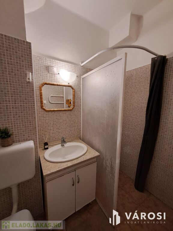 A fürdőszoba és a wc egyben van, egy nagyobb zuhanyzó is helyet kapott.