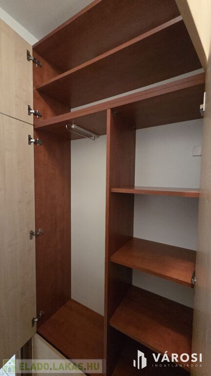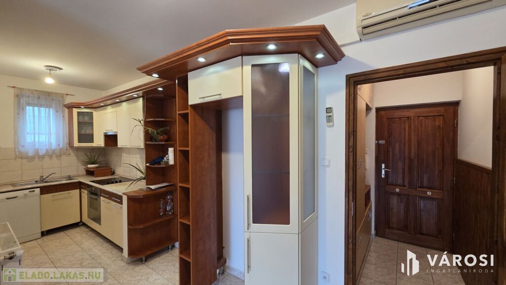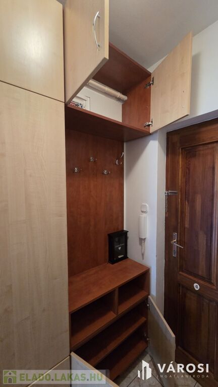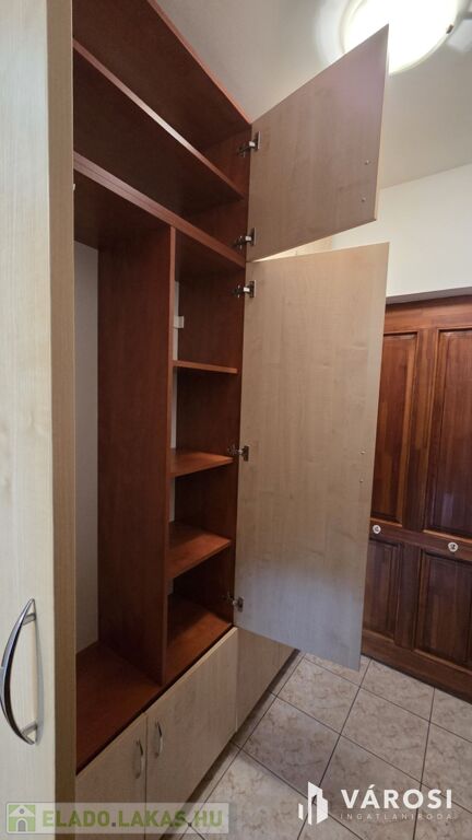 A lakás rendkívül praktikusan kialakított, számos beépített szekrénnyel az előszobában, nappaliban és a tárolóhelyiségben. A konyhabútor jól megtervezett, funkcionális, a mindennapi használatra kiválóan alkalmas. Az ablakok redőnnyel és szúnyoghálóval felszereltek.